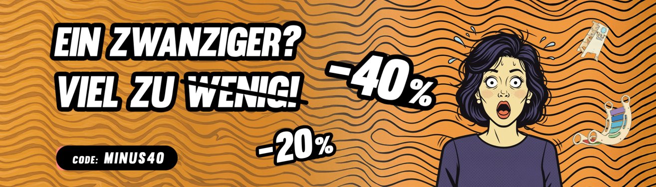 Auf Produkte mit blauem Label gibt’s 20 % Rabatt. Bei unseren TOP-Geschenken mit pinkem Label zusätzlich 20 % Extra-Rabatt mit Code: MINUS40. Nur noch bis 28.Oktober!