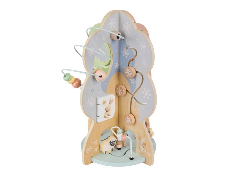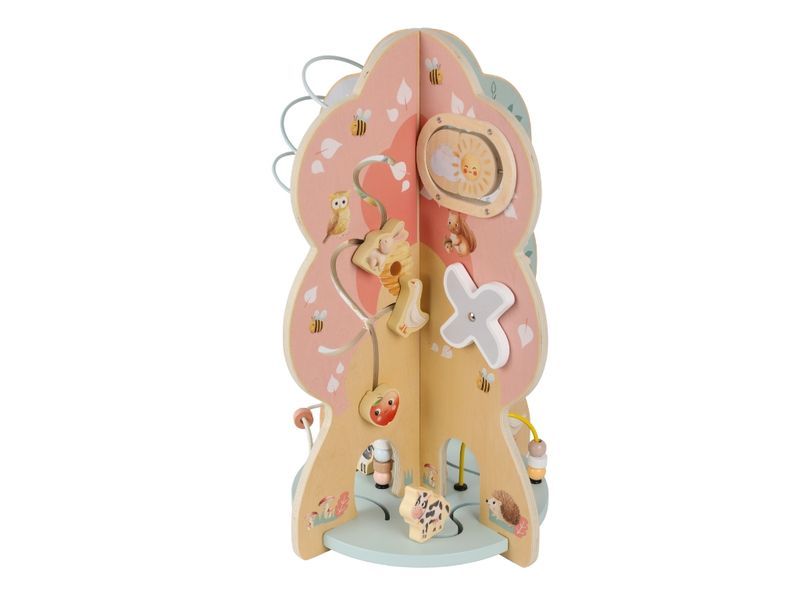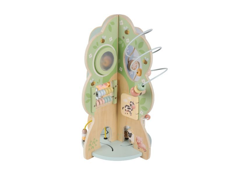 Mit dem Aktivitätsbrett in Form eines Baumes können Mädchen und Jungen mit Spielelementen und Tieren spielen, die sie in ihrer Umgebung, auf dem Land, auf dem Bauernhof sehen. Die angenehmen Pastellfarben und das Tiermotiv verleihen dem Spielzeug eine ansprechende Optik und laden zum vorsichtigen Erkunden ein. Das Aktivitätsbrett Baum ermutigt Kinder zum selbstständigen Spielen, Erforschen und Lernen und fördert ihre Fähigkeiten.