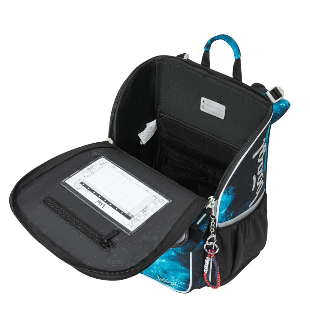 Der Innenraum ist so konzipiert, dass Schulbücher und Hefte optimal organisiert werden können. Ein elastisches Band im Hauptfach hält den Inhalt fest an seinem Platz und trägt dazu bei, dass der Schulranzen ausgewogen und stabil getragen werden kann.