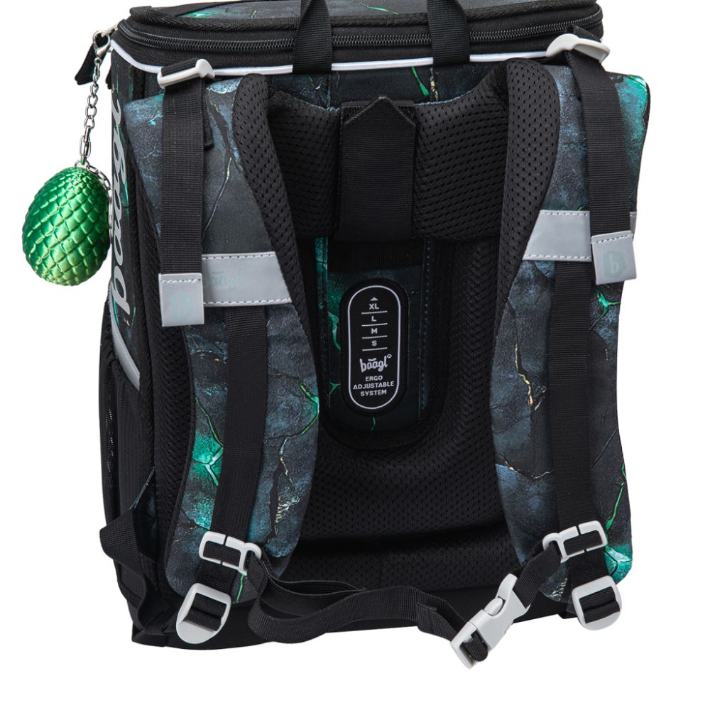 Das Set umfasst ein klassisches einteiliges Schulmäppchen mit zwei Klappen, die mit einem hochwertigen Reißverschluss verschließbar sind, sowie eine Turnbeutel für Schuhe oder andere Freizeitaktivitäten.