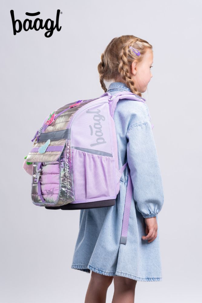 Zum Set gehören ein klassisches Schulmäppchen mit zwei Klappen, das sich mit einem hochwertigen Reißverschluss verschließen lässt, einem Turnbeutel für Schuhe oder andere Freizeitaktivitäten, eine praktische Schürze für den Kunstunterricht und ein Portemonnaie.
