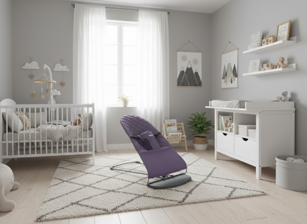 Die Babyliege (Wippe) in neutralem Grau-Lila ist ein sehr kompakter und leicht tragbarer Helfer für das Zuhause mit einem Neugeborenen. Die Babywippe bietet dem Baby Komfort und Bequemlichkeit, ein Gefühl der Sicherheit, sie ist ideal zum Füttern und zum Ausruhen des Babys beim sanften Schaukeln. Die Babywippe ist auch für die Kleinsten geeignet und sicher, sie entspricht den europäischen Normen.