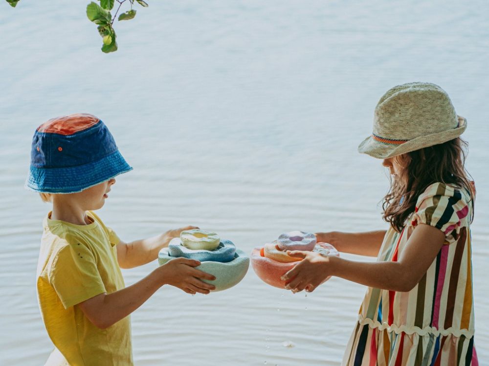 Die robusten Balanciersteine in verschiedenen Größen bieten unendlich viele Möglichkeiten für kreatives Spielen, sensorische Erkundung und Bewegung, drinnen und draußen, zu jeder Jahreszeit. Die Steine eignen sich ideal zum Bauen von originellen Skulpturen und Türmen, zum Stapeln, Überschütten, lustigen Springen, Balancieren, Hüpfen, als Hocker oder sogar als Yoga-Übungsgerät. Besonders beliebt sind sie für Wasser- oder Sandspiele. Der Fantasie sind keine Grenzen gesetzt! Sie können zum Beispiel als Sammelbehälter für Naturschätze oder als Form für Baumaterialien beim Bau eines Schnee-Iglus verwendet werden.