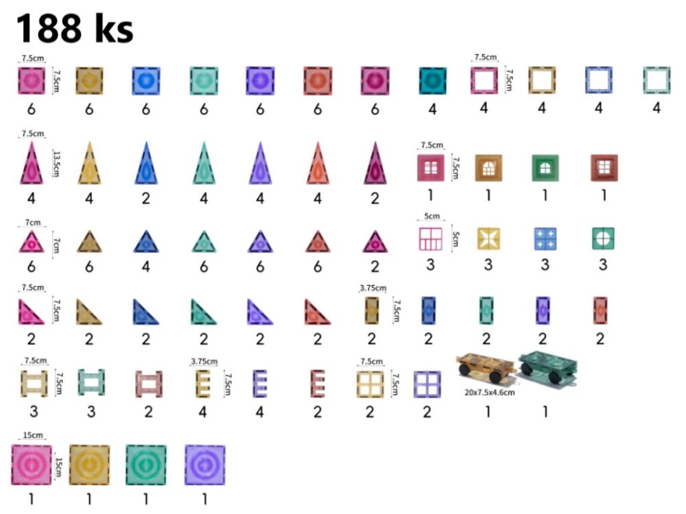 Der Elifix-Magnetbaukasten spricht generationsübergreifend alle Familienmitglieder an. Der Magnetbaukasten enthält eine große Anzahl von Quadraten, Rechtecken, Dreiecken, Fenstern und Zäunen für spektakuläre Kreationen nicht nur für Ihre Kinder. Außerdem gibt es zwei Fahrgestelle auf Rädern für den Bau von Fahrzeugen. Beim Spielen mit dem Magnetpuzzle werden die Kinder ihre Kreativität und ihr logisches Denken anregen, ihre Geduld steigern, ihre motorischen Fähigkeiten trainieren und die Grundlagen der Teamarbeit erlernen, wenn sie zusammenarbeiten.