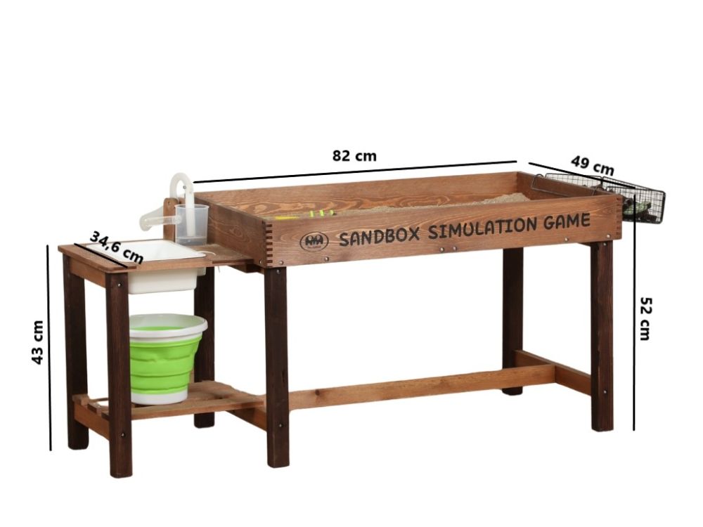 Der Sandkasten besteht aus massivem Tannenholz und MDF. Die stabile Konstruktion sorgt für Langlebigkeit und hohe Widerstandsfähigkeit – auch bei intensivem Spielen.