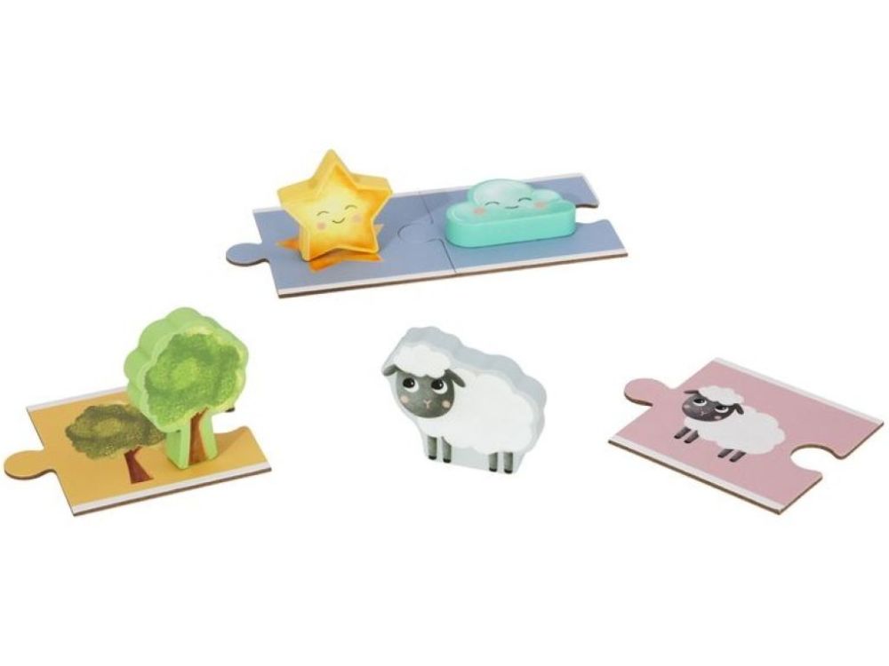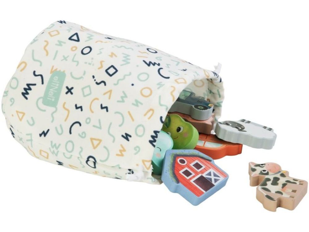 | Inhalt der Packung | Baumwollbeutel mit Kordelzug, 16 Holzobjekte mit Bauernhofmotiv, 16 Puzzlespielkarten |