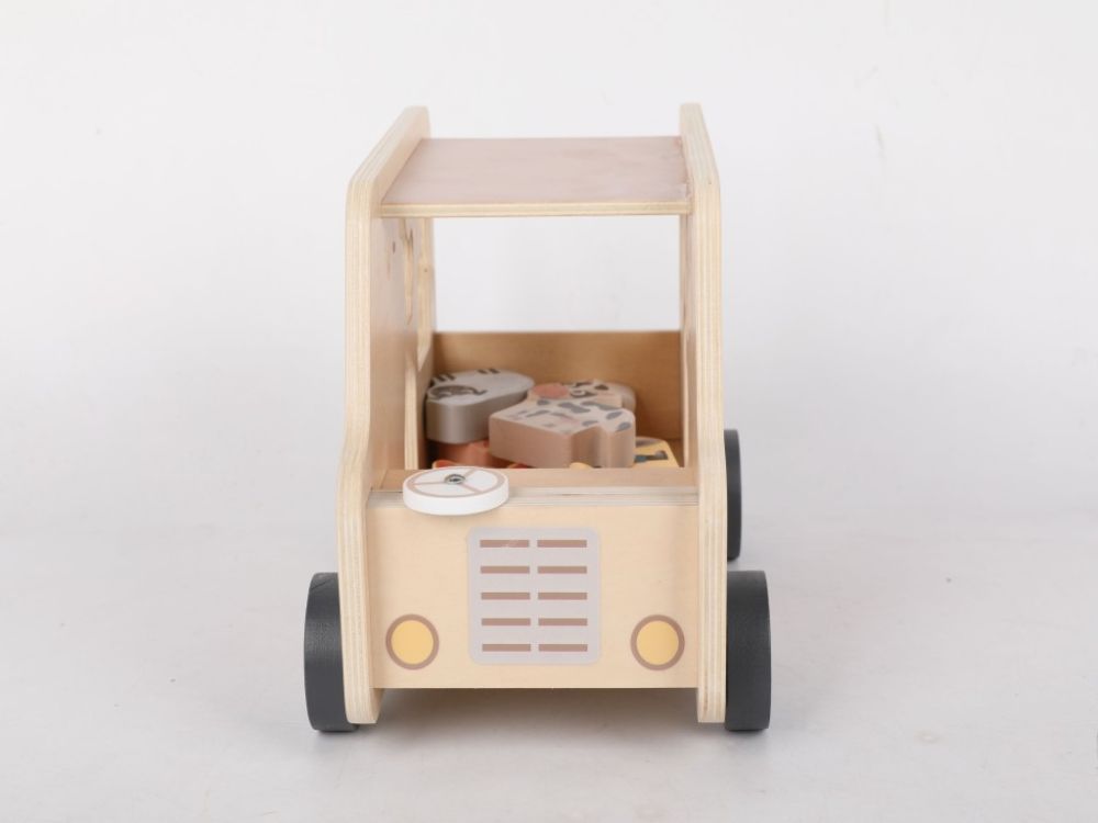 Das 2in1 Holzauto bietet viele Spielmöglichkeiten. Das große Auto ist an sich schon ein tolles Spielzeug, aber weil es ein multifunktionales Kinderspielzeug ist, ist es auch ein originelles Steckspiel mit hölzernen Einlegeteilen in Form von Bauernhoftieren. Beim Beladen der Tiere und beim Spielen mit dem Auto verbessern die Kinder ihre Feinmotorik, ihre Hand-Augen-Koordination und ihr logisches Denken.