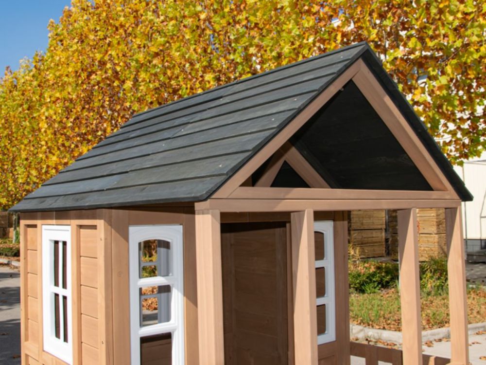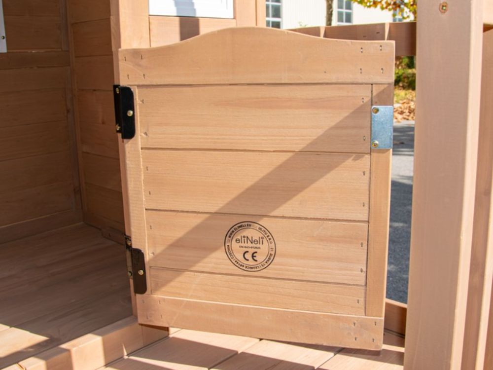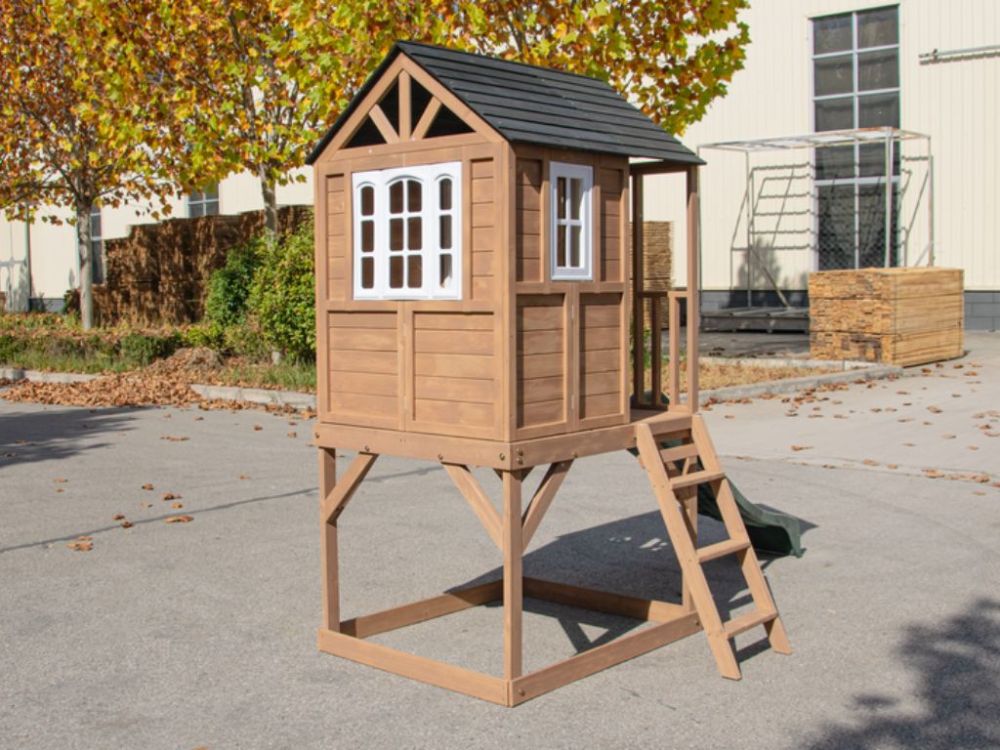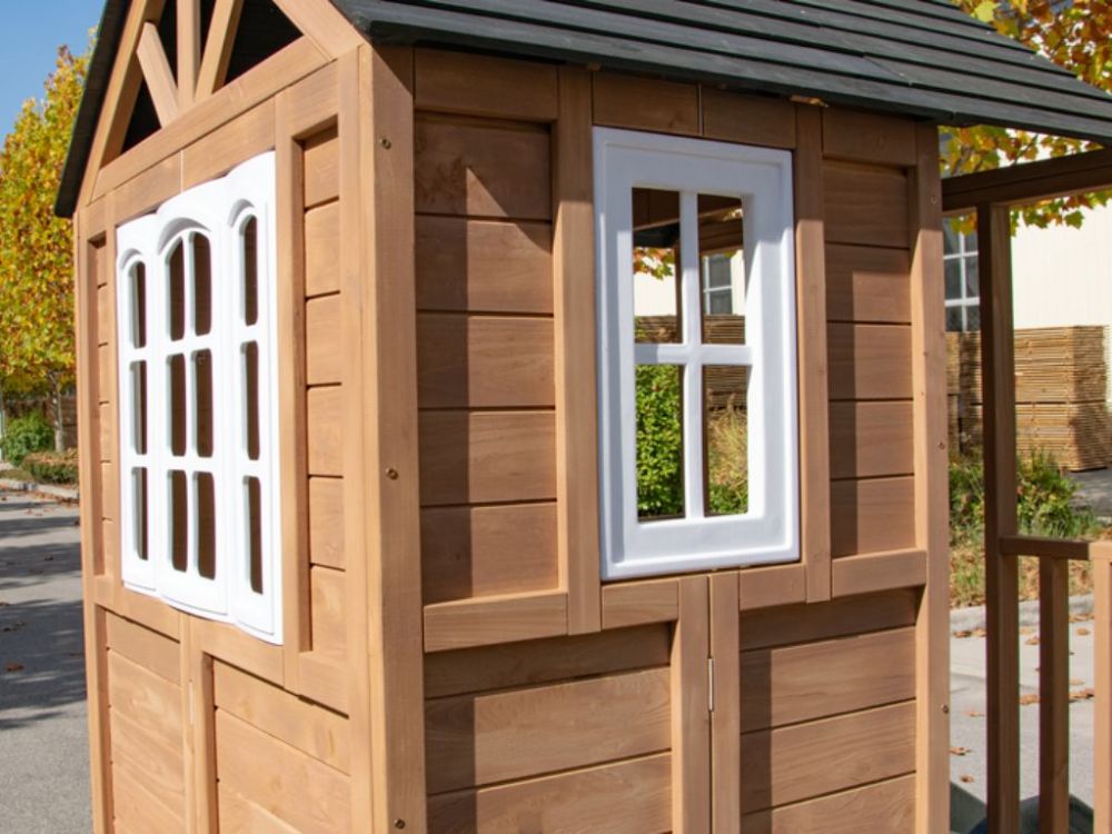 Das Spielhaus ist aus hochwertigem Tannenholz gefertigt, das Stärke, Wetterbeständigkeit und Langlebigkeit garantiert.