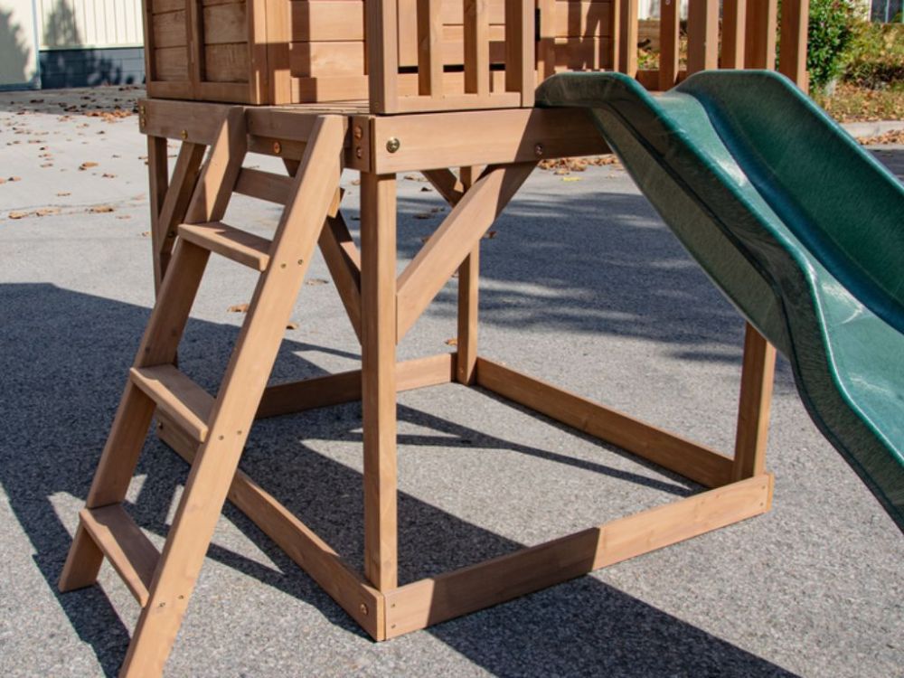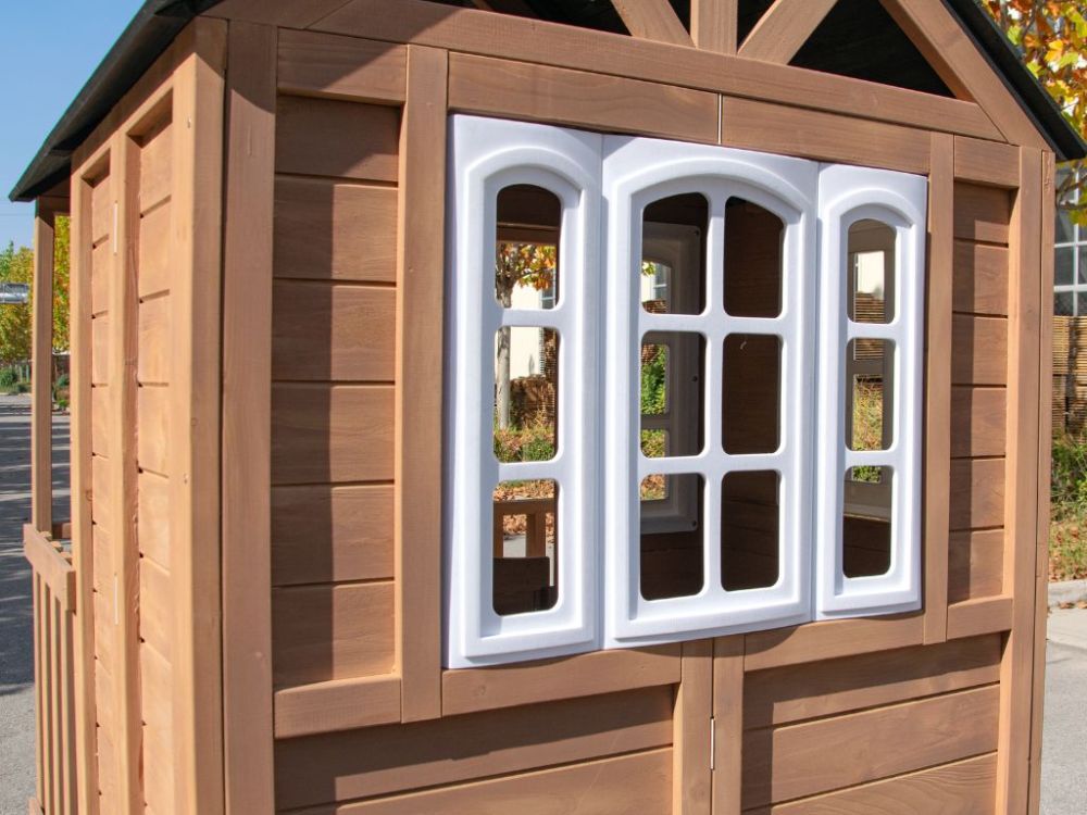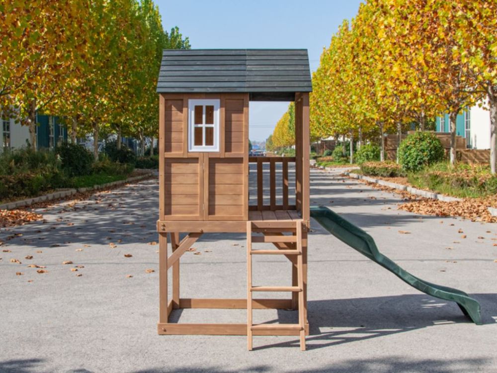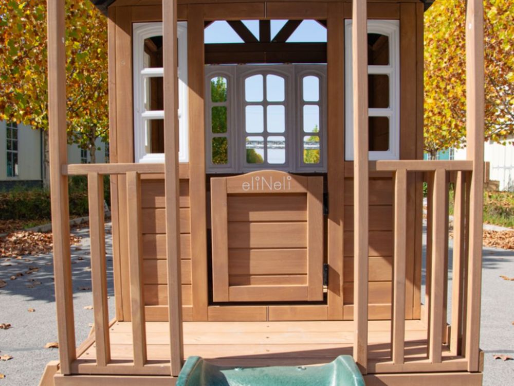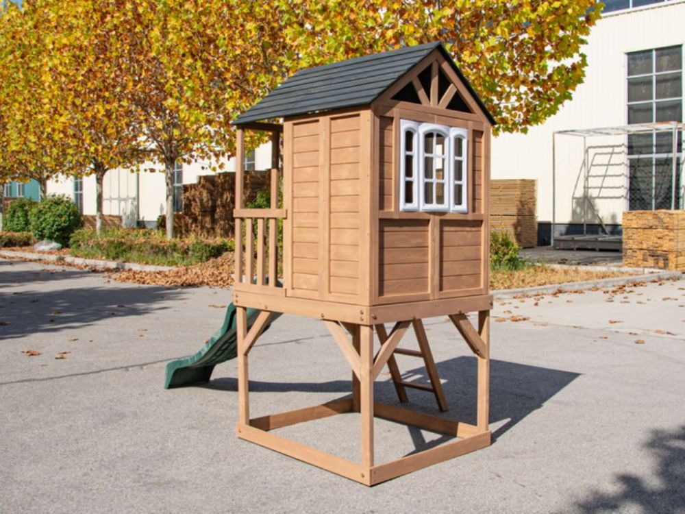 Das Spielhaus ist aus hochwertigem Tannenholz gefertigt, das Stärke, Wetterbeständigkeit und Langlebigkeit garantiert.