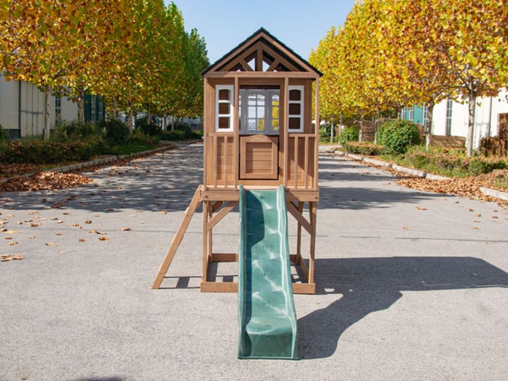 Dank der Verwendung von natürlichen Materialien ist das Spielhaus umweltfreundlich und umweltschonend. Darüber hinaus ist die Holzkonstruktion ästhetisch ansprechend und wird jeden Garten wunderbar ergänzen.