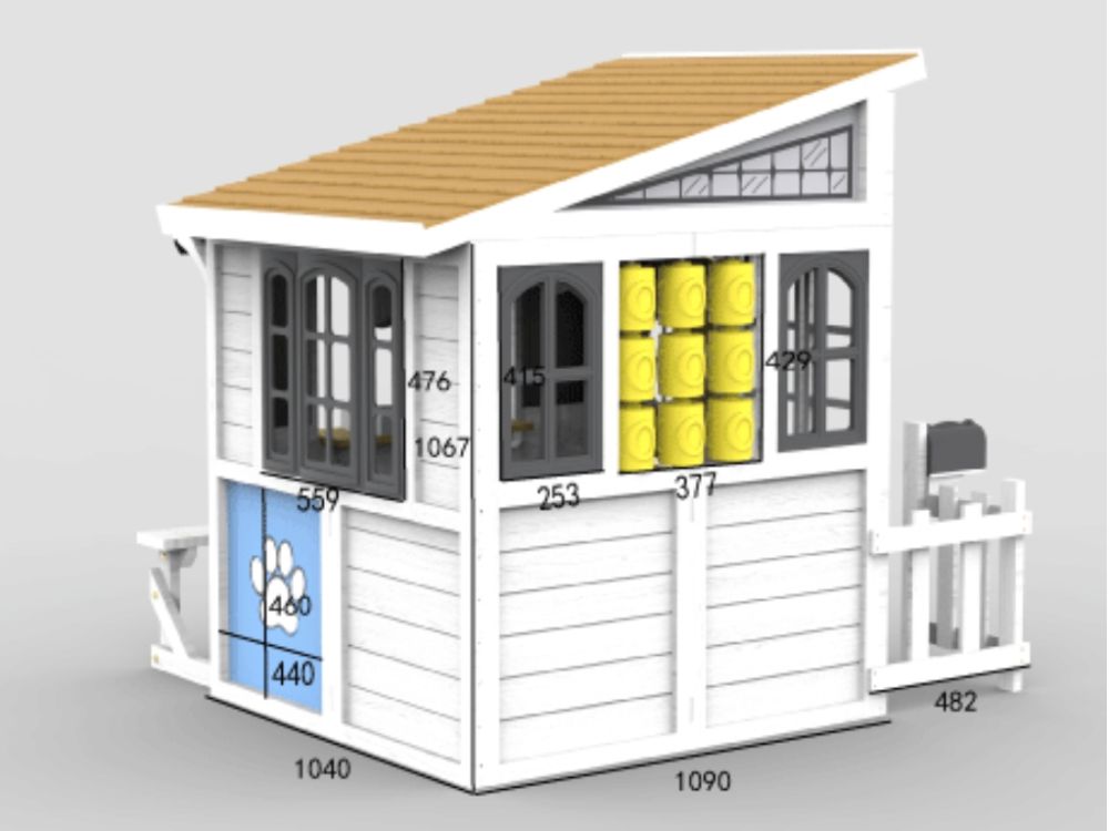Das Schrägdach ist nicht nur ein ästhetisches Merkmal, sondern auch eine praktische Lösung - es sorgt für eine effiziente Regenwasserableitung und trägt zu einer längeren Lebensdauer des Hauses bei. So können die Kinder in einer trockenen und komfortablen Umgebung spielen.