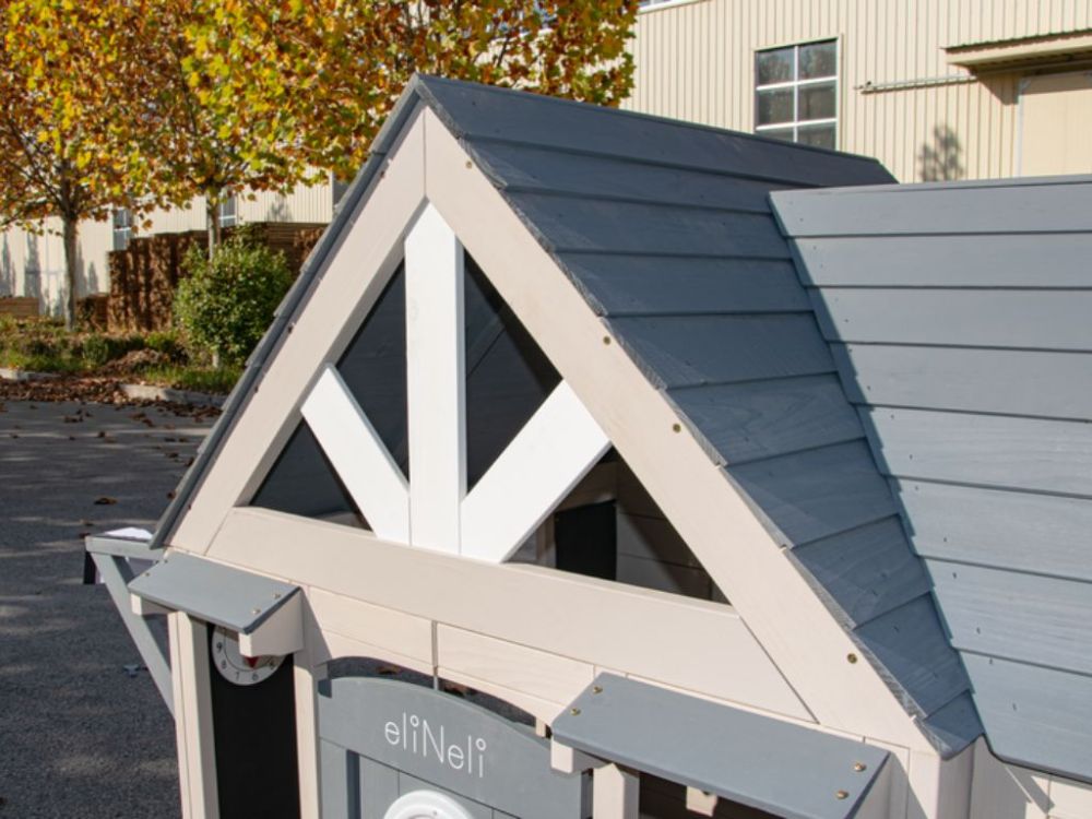 Das Haus verfügt über eine holländische Tür mit einem Briefkasten und einem Namensschild, die das interaktive Spiel bereichern und es den Kindern ermöglichen, Briefe zu senden und zu empfangen.