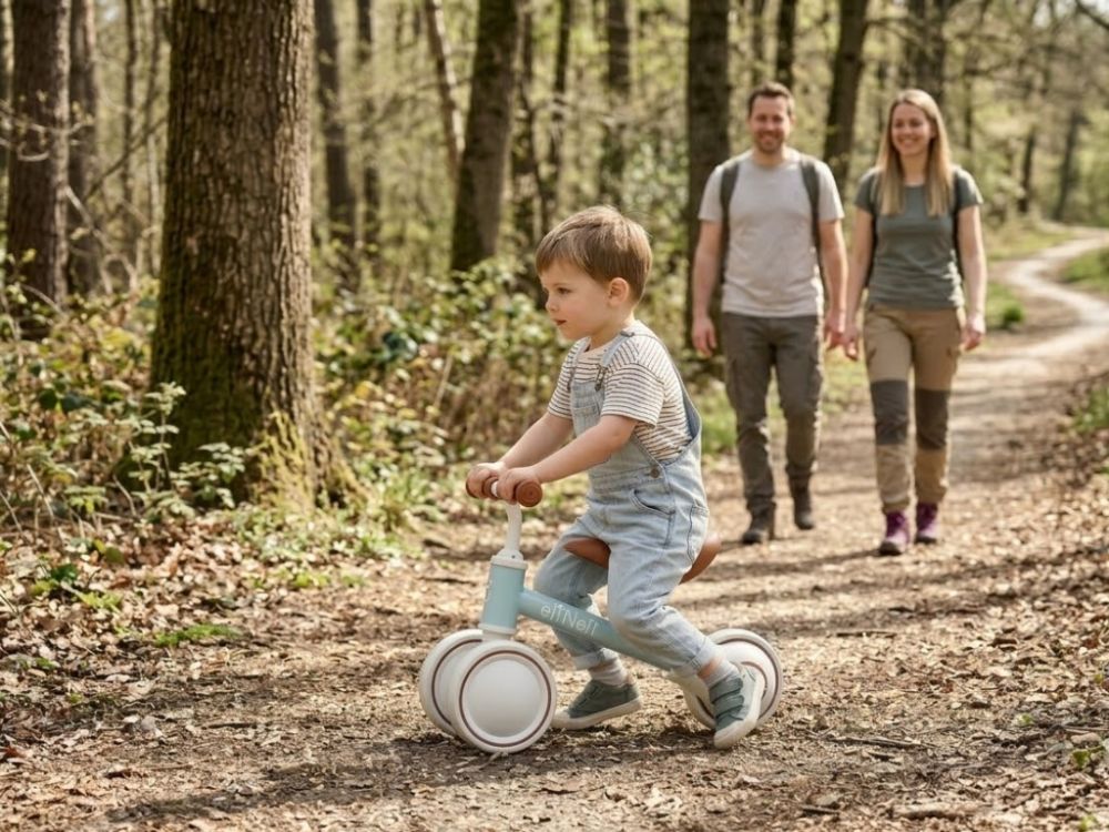 Sicherheit steht an erster Stelle – das Laufrad punktet mit zwei Vorderrädern, die für extra Stabilität und mehr Gleichgewicht sorgen. In Kombination mit dem niedrigen Schwerpunkt lernen Kinder besonders sicher zu fahren, während gleichzeitig das Risiko von Stürzen deutlich reduziert wird.