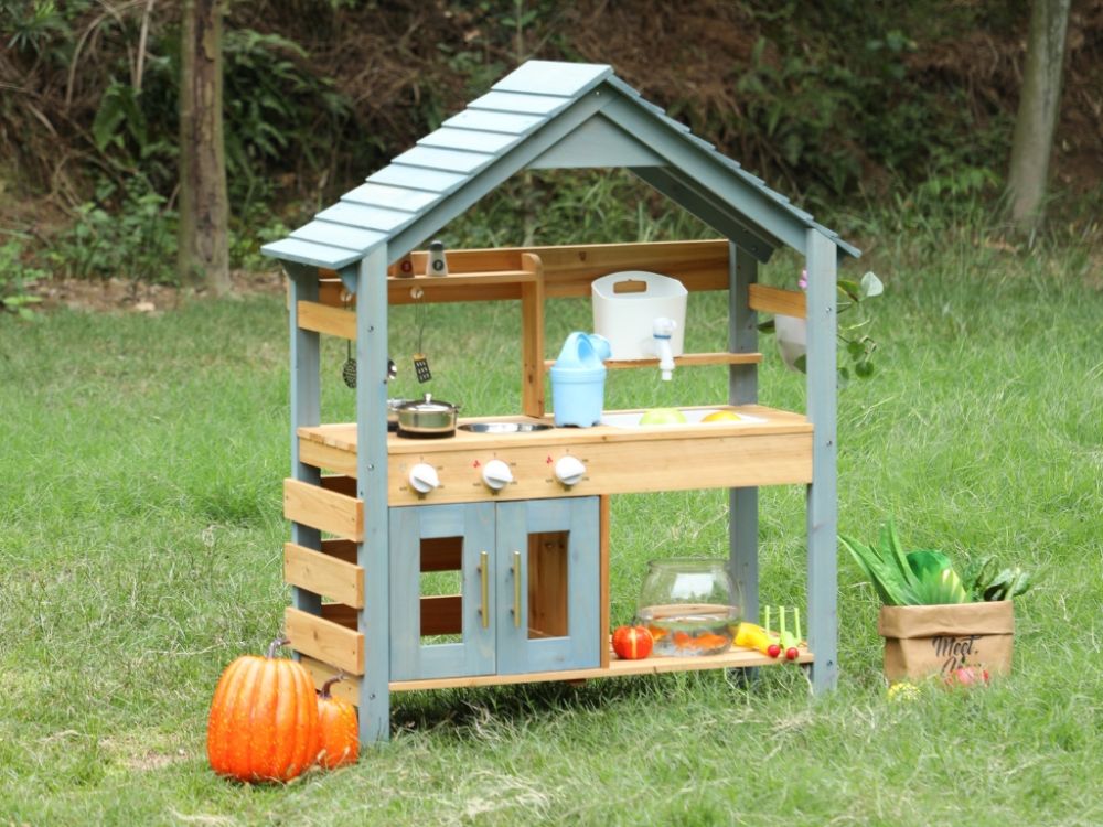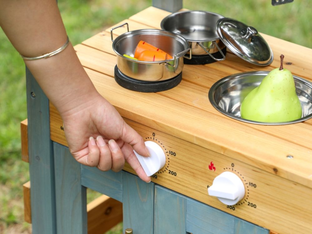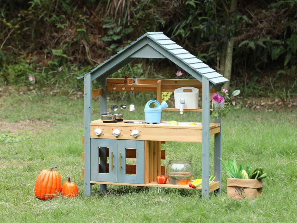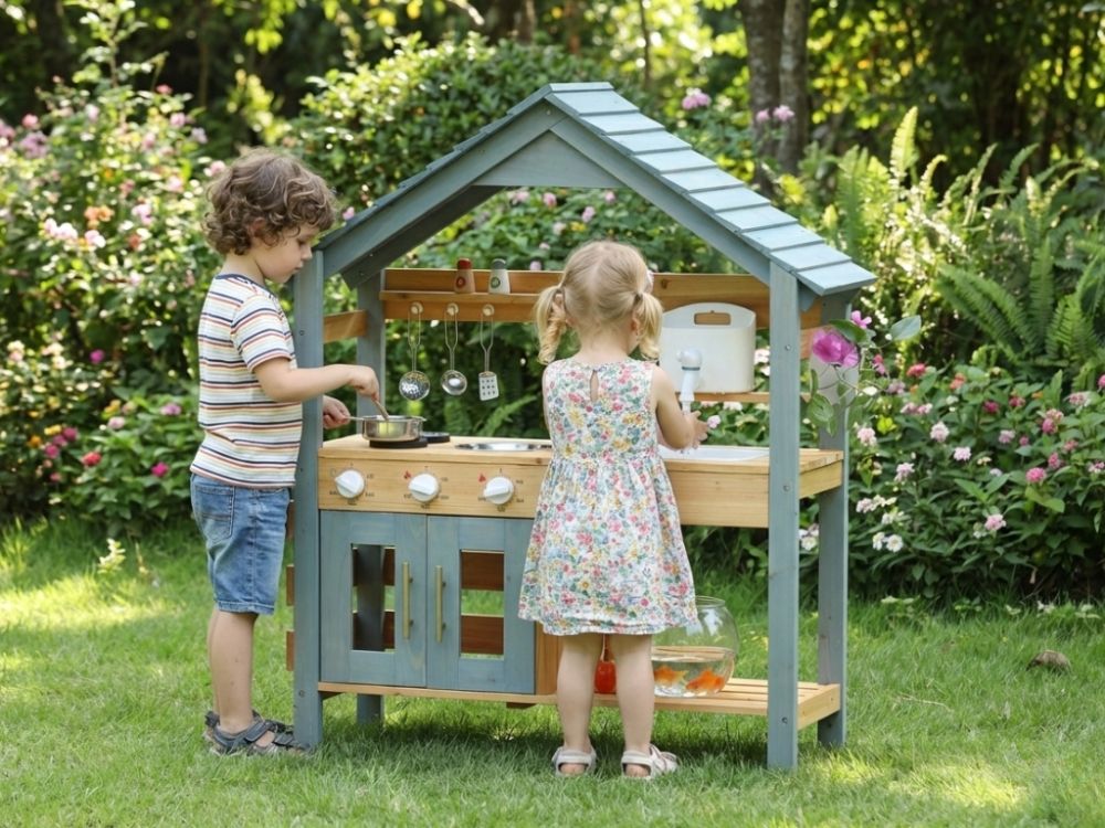 Kinder Outdoor Spielküche aus Holz – realistische Gartenküche für kleine Köche