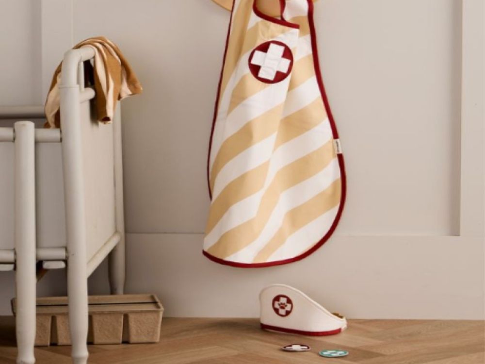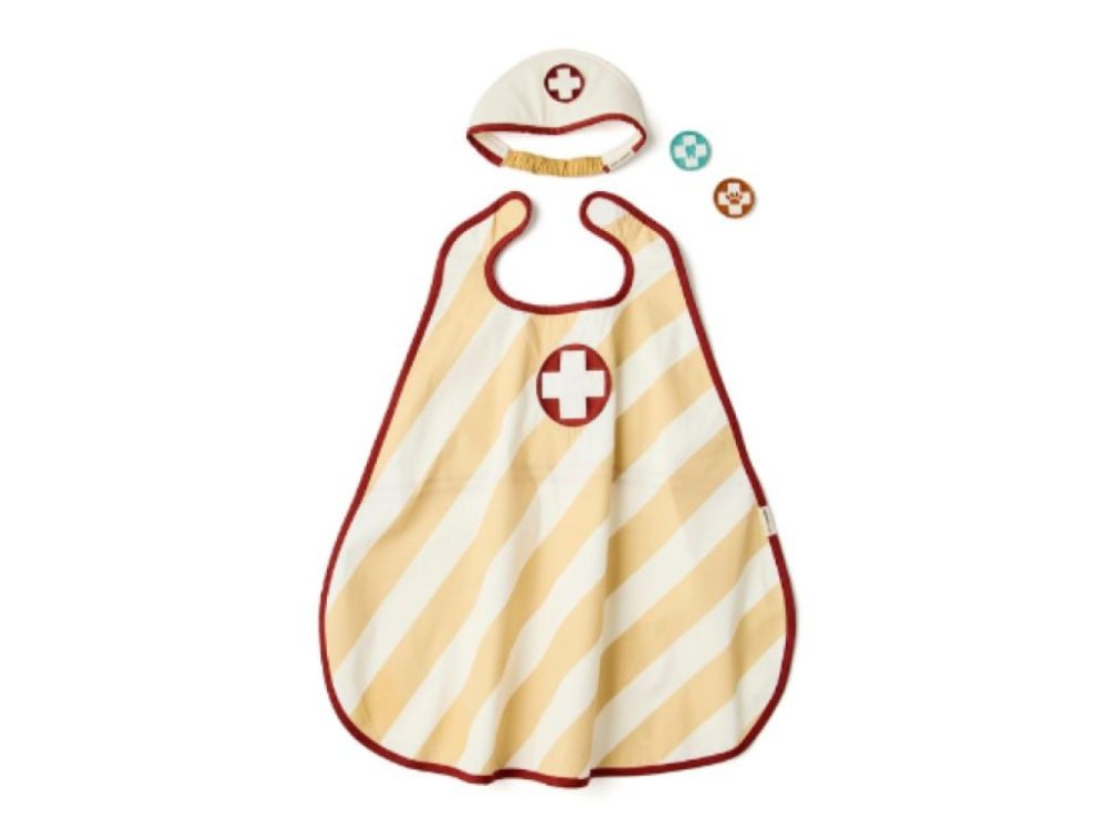 Der schicke Arztkittel zum Wenden verwandelt jedes Kind in eine geschickte Krankenschwester, die bei allen Krankheiten und Verletzungen zur Stelle ist. Dank des praktischen Klettverschlusses lässt er sich leicht an- und ausziehen und ist somit ideal für schnelle Aktionen beim Spielen. Der Kittel ist nicht nur ein lustiges Kostüm, sondern auch ein großartiges Werkzeug für die Entwicklung der Fantasie der Kinder. Außerdem gibt es ein Stirnband mit austauschbaren Ansteckern mit Symbolen für Ärzte, Zahnärzte und Tierärzte, mit denen sich die Kinder beim Spielen wie echte Profis fühlen können.