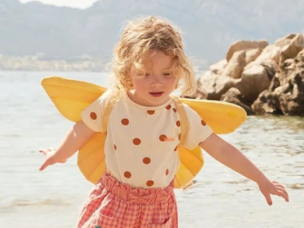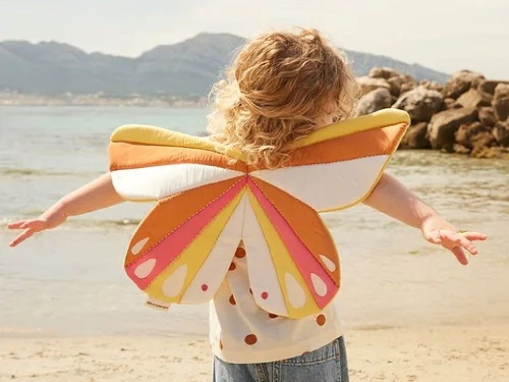 Zarte und elegante Schmetterlingsflügel mit rosafarbenen Details verwandeln jedes kleine Mädchen in ein bezauberndes Naturwesen, das auf den Wellen der Fantasie schwimmt. Dank der elastischen Schultergurte lassen sich die Flügel leicht an- und ausziehen und sind somit ideal für das eigenständige Spiel. Das gepolsterte Material hilft, die Form während der Bewegung beizubehalten, und die gestickten Details verleihen den Flügeln eine schöne Textur und Stabilität.