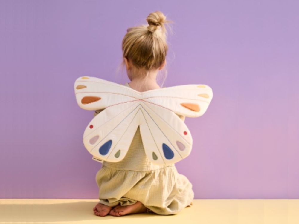 Die Schmetterlingsflügel in leuchtenden Farben mit weicher Polsterung und elastischen Schultergurten sind einfach anzuziehen und sitzen bequem. Dieses Kinderkostüm ist perfekt für Karneval, Tanz und alltägliche spielerische Momente zu Hause auf dem Teppich und im Freien.
