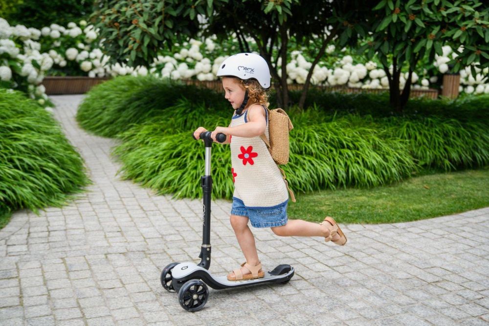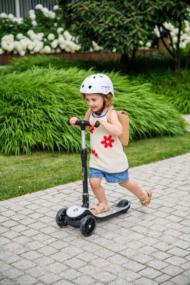 Der dreirädrige Kinderroller MoMi SAN in elegantem Schwarz ist der perfekte Begleiter für aktive Kinder. Er kombiniert modernes Design mit hoher Funktionalität und sorgt für sicheren und spaßigen Fahrspaß.