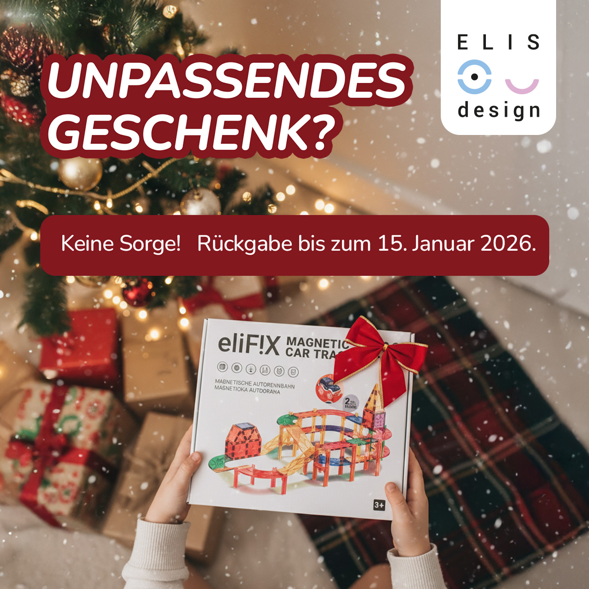Es passiert – trotz bester Absichten geht der Plan manchmal nicht auf. Du wählst sorgfältig aus, liest Bewertungen, und trotzdem springt der Funke nicht über. Oder das gleiche Geschenk landet zweimal unterm Baum. Kein Stress! Für alle Weihnachtsgeschenke, die du zwischen dem 1. Oktober und 24. Dezember 2025 bei uns gekauft hast, gilt eine verlängerte Rückgabefrist bis zum 15. Januar 2026. Beachte bitte, dass diese verlängerte Frist nur für Rückgaben gilt – ein Umtausch ist in diesem Fall nicht möglich.