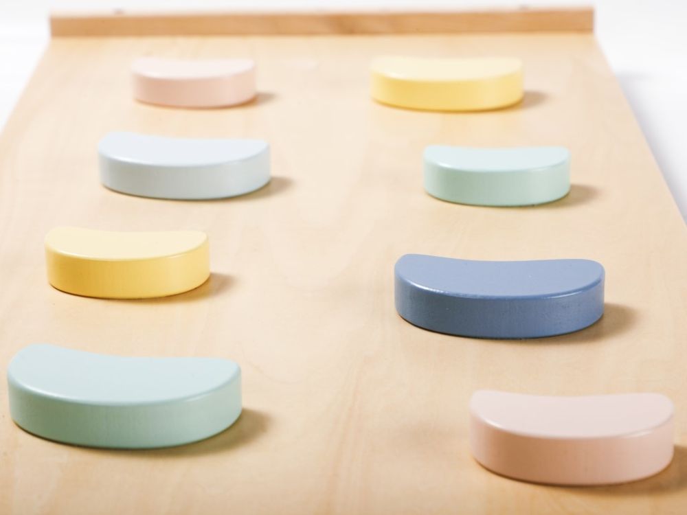 Das verbesserte doppelseitige 2in1 Brett aus der exklusiven PRO-Serie ist eine vielseitige Ergänzung zu den 5in1 Montessori-Kletterwippen von ELIS DESIGN und eliNeli. Dank der Änderung des Materials ist es jetzt noch stärker und haltbarer, für eine längere Lebensdauer und Sicherheit Ihres Kindes. Auf der einen Seite dient sie als Rutsche, auf der anderen als Kletterbrett mit pastellfarbenen Fängern. Das Brett aus hartem Birkensperrholz aus den nordischen Wäldern zeichnet sich durch seine hohe Qualität, Langlebigkeit und präzise Verarbeitung aus. Es fördert die natürliche motorische Entwicklung und ist bereits für Kinder ab 1 Jahr geeignet.