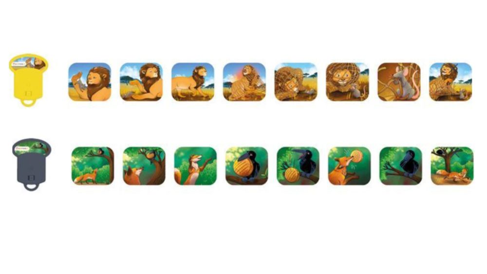 Erweitern Sie den KIDYSLIDE Kinderprojektor um weitere zauberhafte Geschichten und öffnen Sie die Tür zu neuen Welten der Fantasie: Dieses Set aus drei illustrierten Discs bringt Ihnen erhellende Geschichten aus den Märchen von La Fontaine.