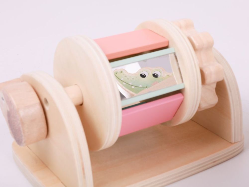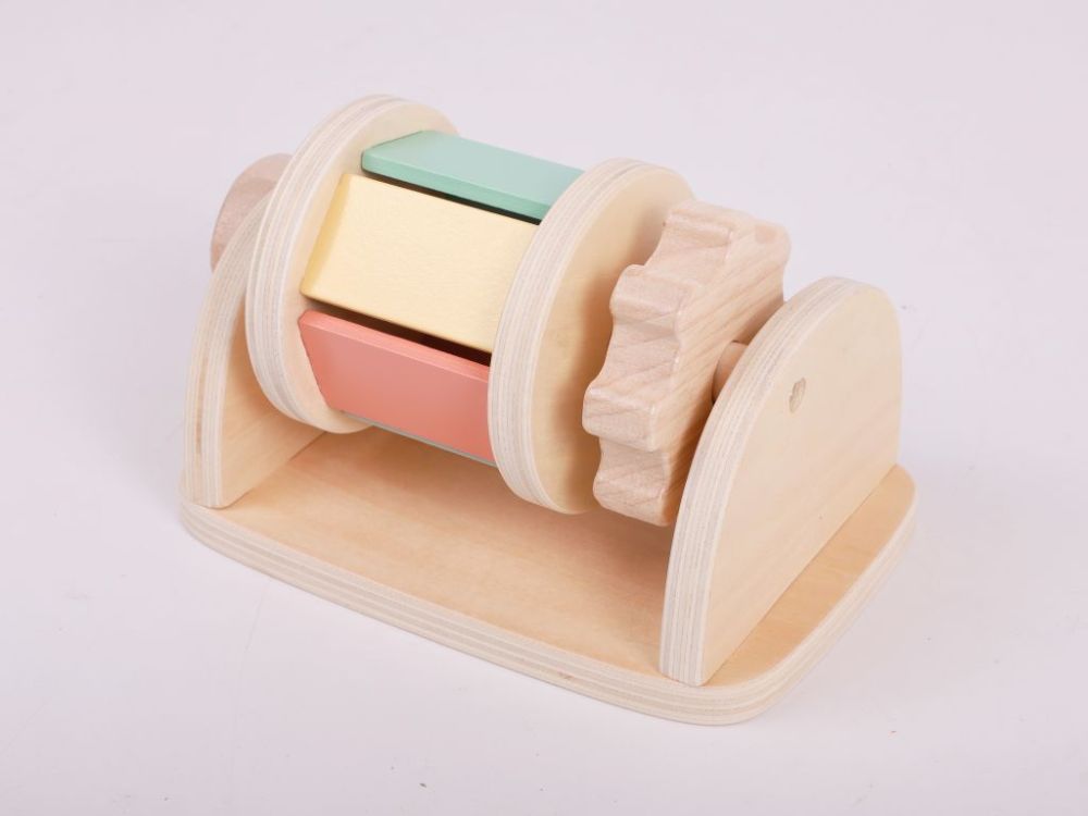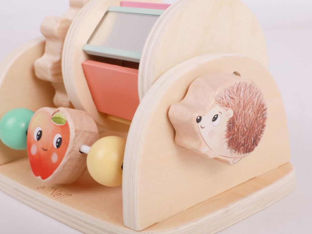 Beim Spielen mit der rotierenden Trommel entwickeln Kinder dank der interaktiven Elemente Feinmotorik, Hand-Augen-Koordination, kognitive Fähigkeiten und Sinneswahrnehmung.
