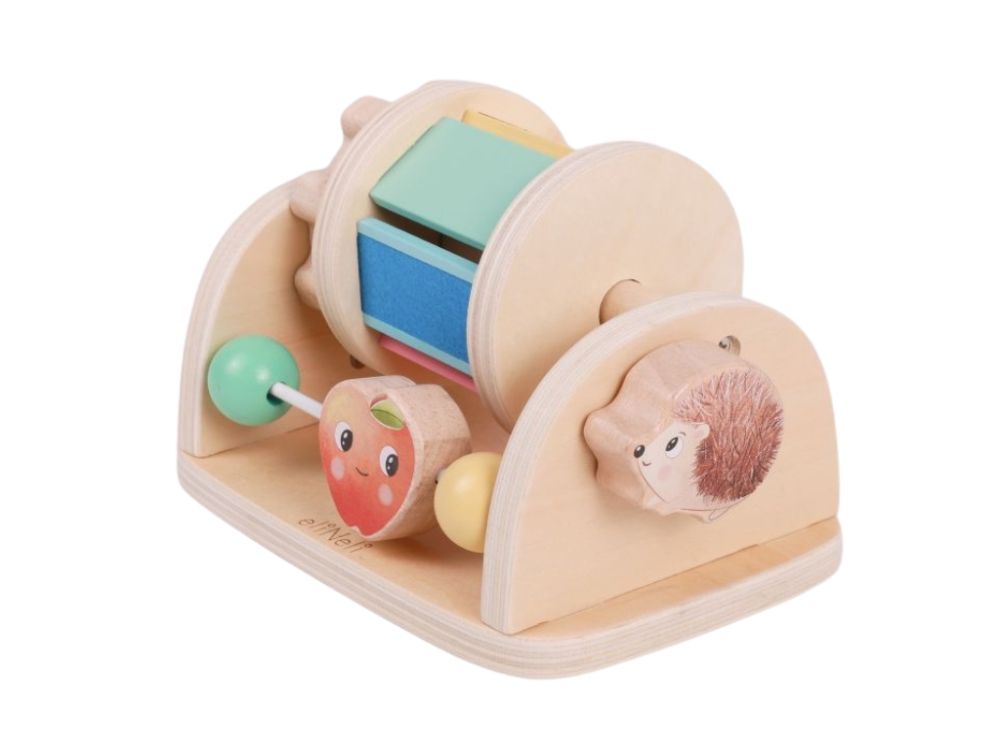 Die hölzerneSensoriktrommel auf einem Ständer in sanften Regenbogenfarben regt direkt zum Erkunden an. Durch einfaches Drehen fängt die Kugel im Inneren an, Geräusche zu machen, die Kinder so sehr fesseln, dass sie das Spielzeug gar nicht mehr aus der Hand legen wollen.