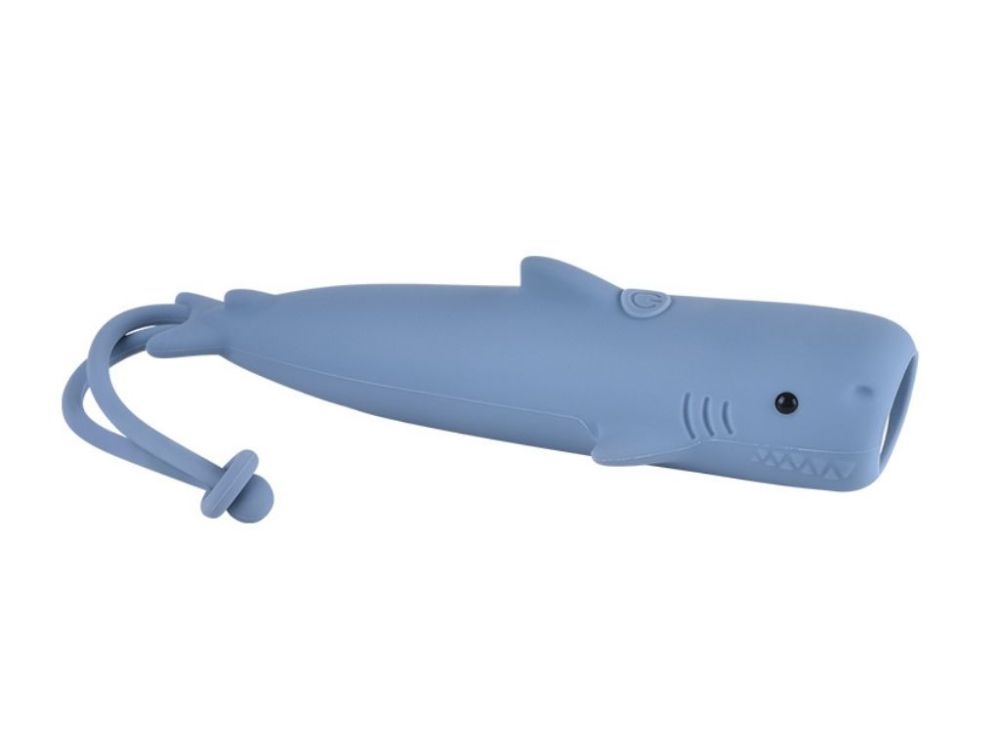 Die Kindertaschenlampe aus Silikon im blauen Hai-Design besticht auf den ersten Blick durch ihr niedliches Aussehen und den weichen, BPA-freien Silikonkörper. Sie fühlt sich angenehm an, ist stoßfest und sicher für Kinderhände, so dass sie schon für die Kleinsten geeignet ist.
