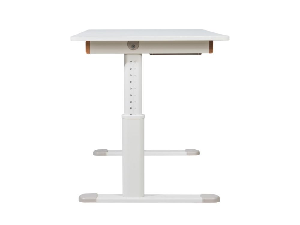 Die stabile Konstruktion aus hochwertigem Stahl und einer umweltfreundlichen, laminierten Tischplatte gewährleistet hohe Stabilität, Belastbarkeit und Langlebigkeit. Mit seinem zeitlosen, schlichten Design in Weiß fügt sich der Schreibtisch harmonisch in jedes Kinder- oder Jugendzimmer ein.