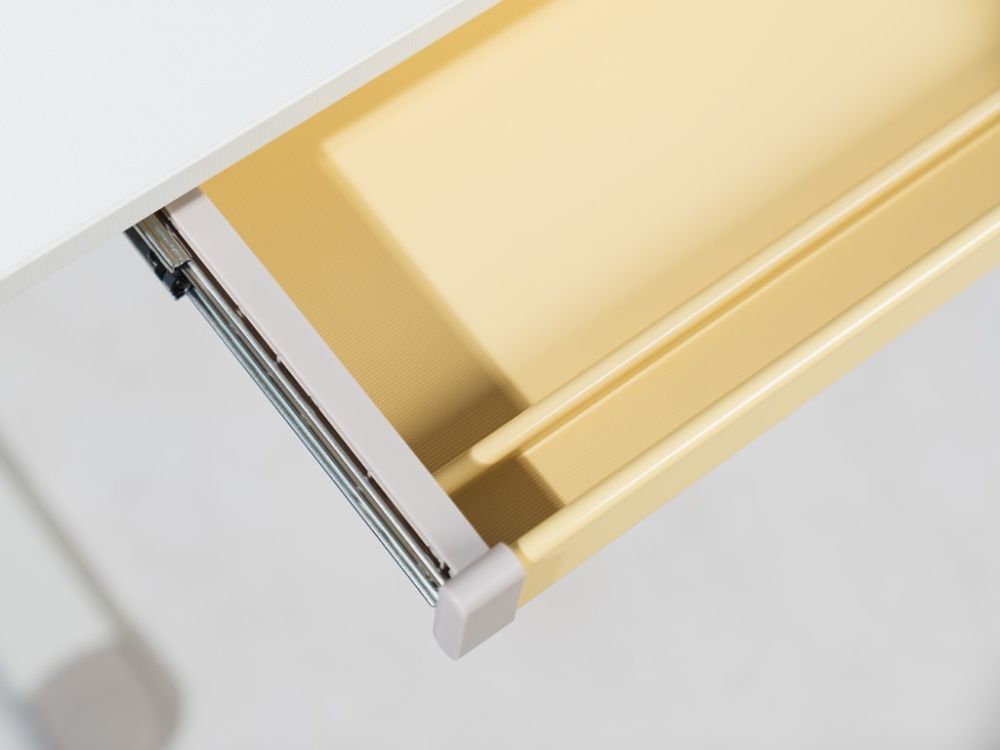Viel Stauraum für Schul- und Bastelmaterialien direkt unter der Tischplatte.