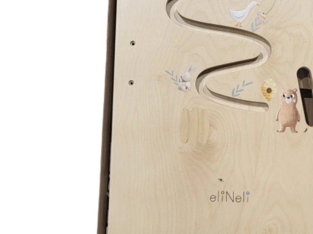 Dank der verstellbaren Plattform wächst der Turm mit Ihrem Kind mit und bleibt in jeder Entwicklungsphase eine sichere Stütze. Er vereint drei Funktionen in einem - Lernturm, Tisch und Stuhl. Der Turm ist mit pädagogischen Elementen ausgestattet, die die Entwicklung der motorischen und kognitiven Fähigkeiten unterstützen.