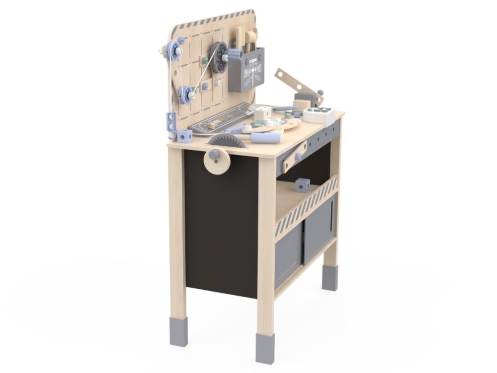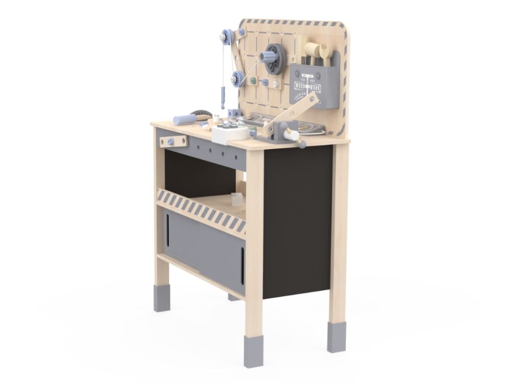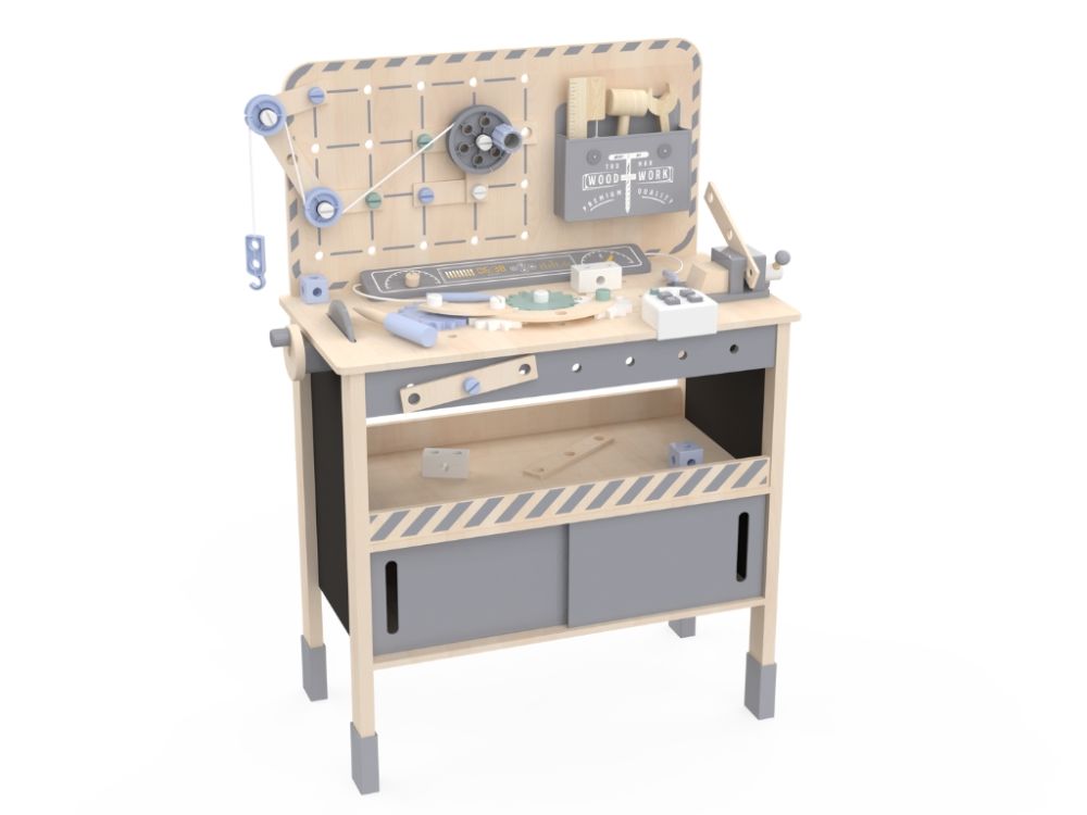 Werkbank hilft Kindern, verschiedene Fähigkeiten wie Fein- und Grobmotorik, logisches Denken und Kreativität zu entwickeln. Dies ist entscheidend für die Gesamtentwicklung des Kindes.